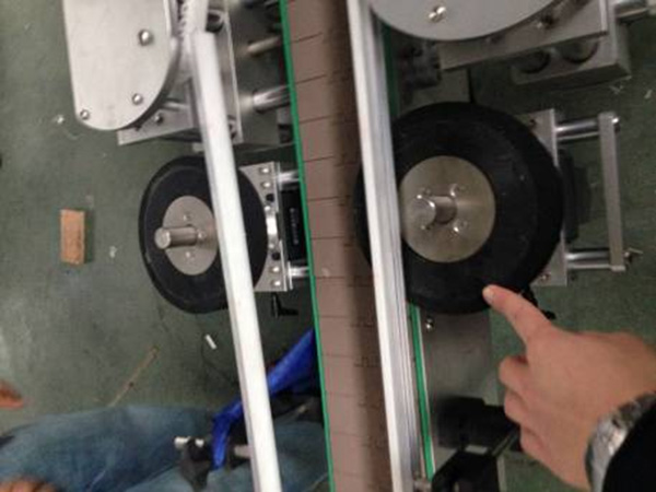 После того, как бутылки попадают на конвейер этикетировочной машины, бутылки подаются на этикетировочную машину с постоянной скоростью. Механическое фиксирующее устройство отделяет оклеенные предметы на фиксированное расстояние и толкает оклеенные предметы вдоль направления конвейерной ленты. После механической системы (приводное колесо, этикетировочное колесо и катушка), приводное колесо периодически тянет этикетировочную ленту для перемещения, и этикетка вытягивается из катушки и наклеивается на оклеиваемый объект через этикетировочное устройство.